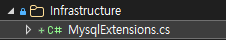 Infrastructure 폴더를 생성하여 MysqlExtensions.cs 파일을 생성하였습니다.
