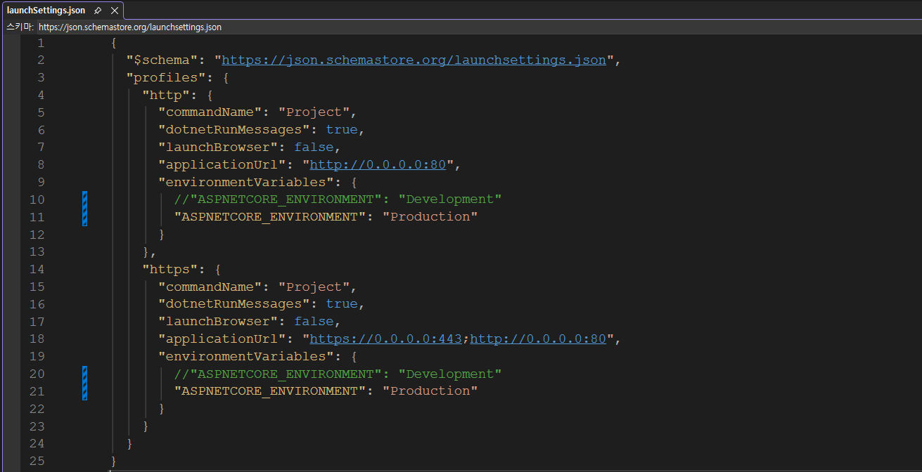 "ASPNETCORE_ENVIRONMENT": "Production"