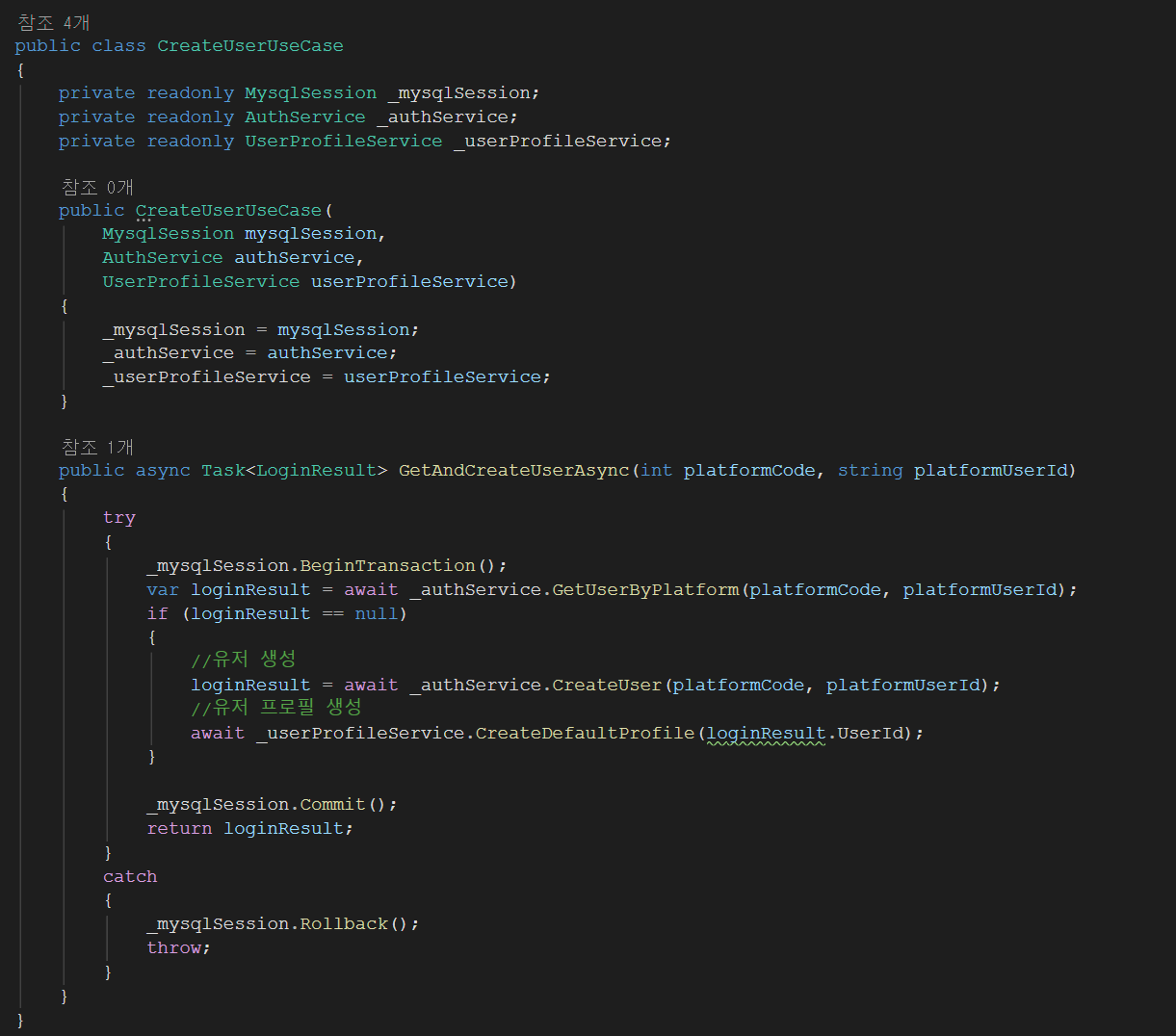 유저 조회, 생성, 유저 프로필 생성을 하나의 UseCase로 묶어 한번에 처리하겠습니다.