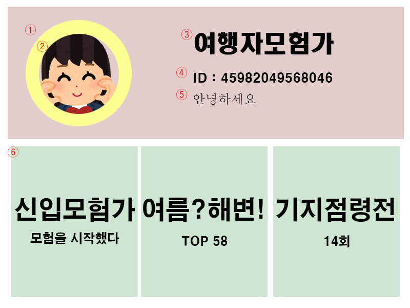 ① 프로필 캐릭터 액자 : 프로필 캐릭터를 감싸는 외적 요소