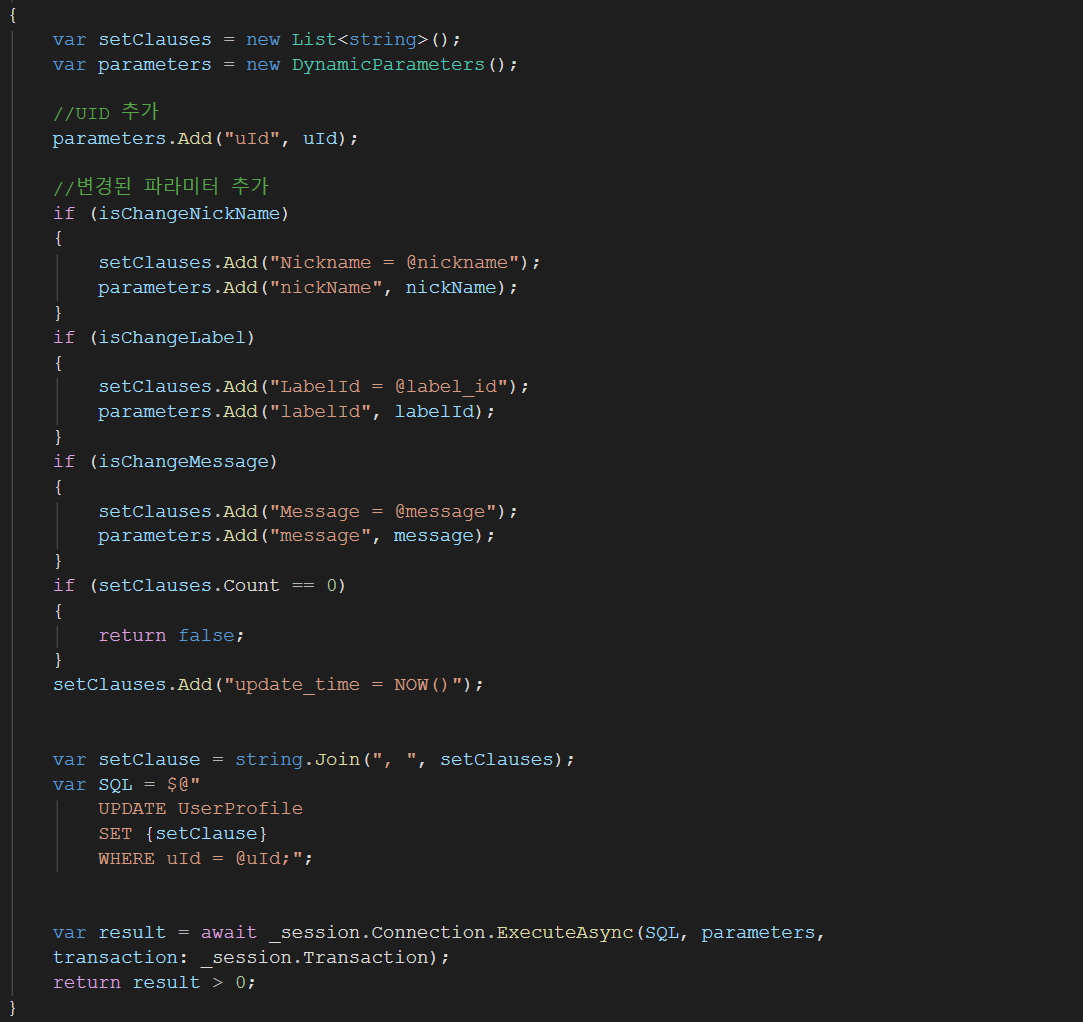 각 프로필 항목에 대해 변경 여부를 나타내는 Bool 값을 함께 전달받아