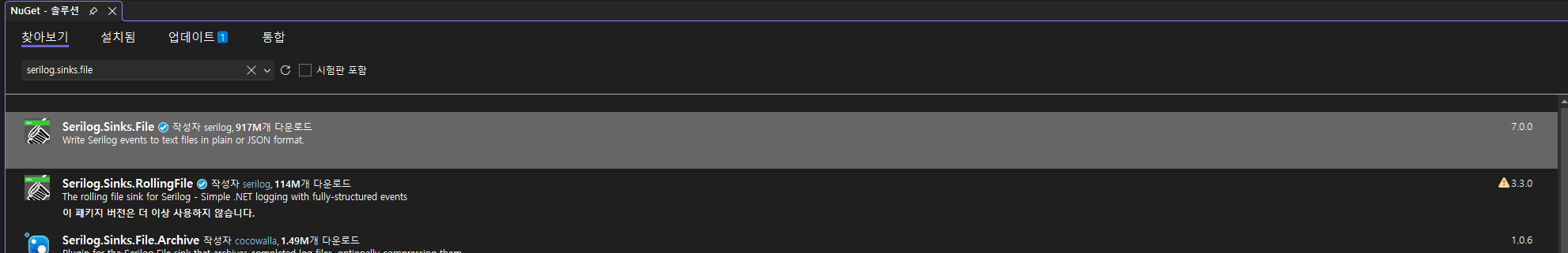 [Serilog 설치]